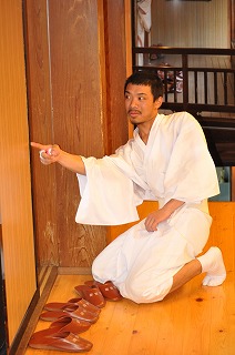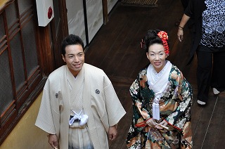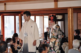 さあ、花嫁行列の始まりです。新郎・新婦さま御支度を整え玄関にいらっしゃいました。