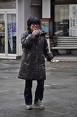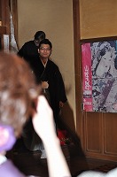 袴姿はマルチな才能で大活躍の神社の陽君!。 青石畳通りの美保館玄関前では皆様が少しずつ集まってらっしゃいます。 |