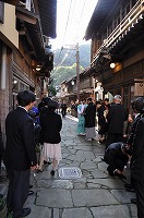 花嫁行列は美保館を出発。青石畳通りから美保神社へ
