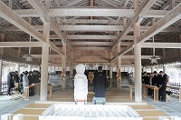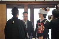 式場となる美保神社では本格的な祭事が次々に催されます。神様と参列者皆様に見守られての結婚式です。