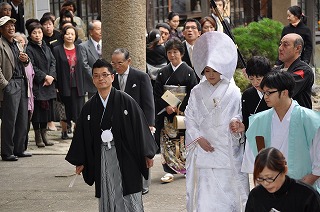 花嫁行列で式に向かうという体験、とても印象に残りると言われます。 全員参加型の婚礼です。